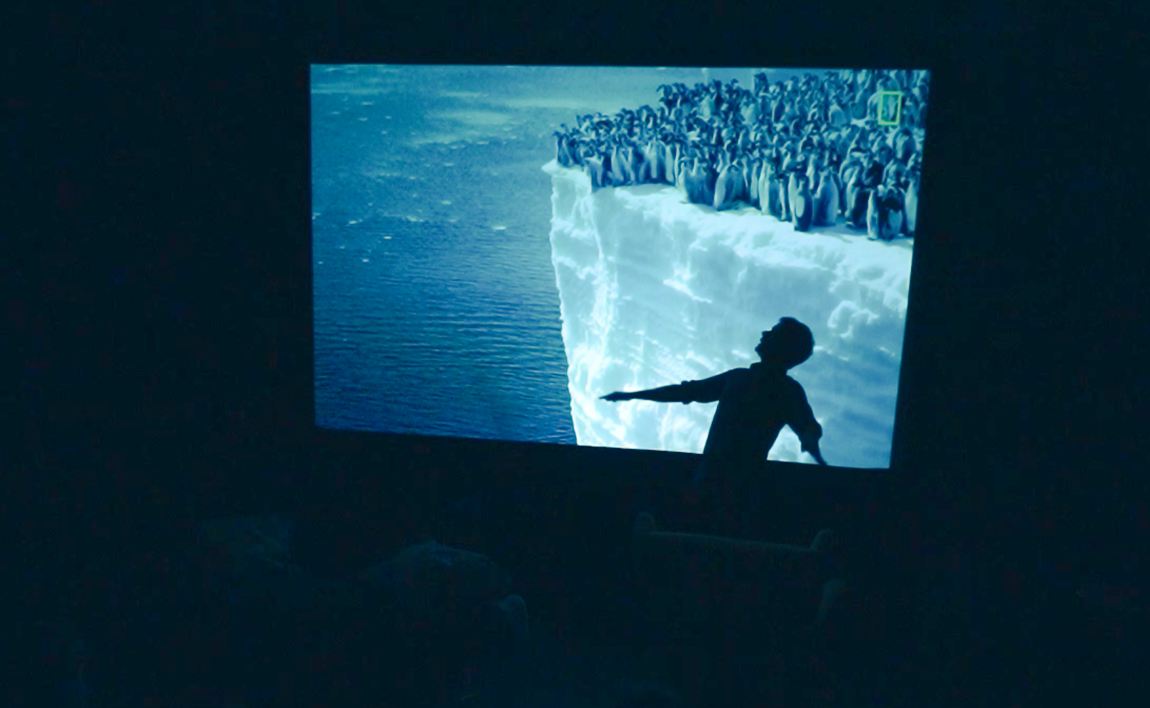 Alternati alla narrazione e alle comiche iperboli dell’attore, compaiono sullo sfondo le immagini video di un mondo tutto bianco di natura artica che suggerisce una visione più ampia di quella antropocentrica e invita a sentirsi tutti parte dello stesso ecosistema.