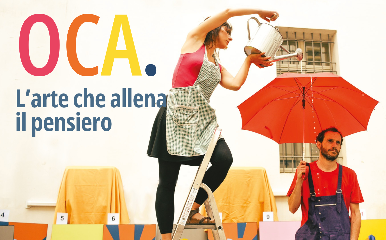 OCA è il risultato di un percorso di 2 anni di studio e ricerca. I contenuti del gioco sono stati progettati in collaborazione con l’Università degli Studi di Torino – Dipartimenti di Studi Umanistici, Psicologia, Giurisprudenza, CIRSDE – con il coinvolgimento di un comitato esperto e alla sua realizzazione hanno collaborato gruppi e associazioni impegnate in campo civile per un totale di circa 120 abitanti: giovani, adolescenti, donne di diverse culture, figure professioniste del mondo dell’educazione e del sociale, team di ricerca universitario hanno partecipato a un programma di workshop e incontri tra febbraio 2020 e maggio 2021. Gli studenti e le studentesse dell’Accademia Albertina di Belle Arti di Torino hanno progettato e realizzato in chiave artistica le caselle che compongono il classico gioco dell’oca e che compone la scenografia della performance.